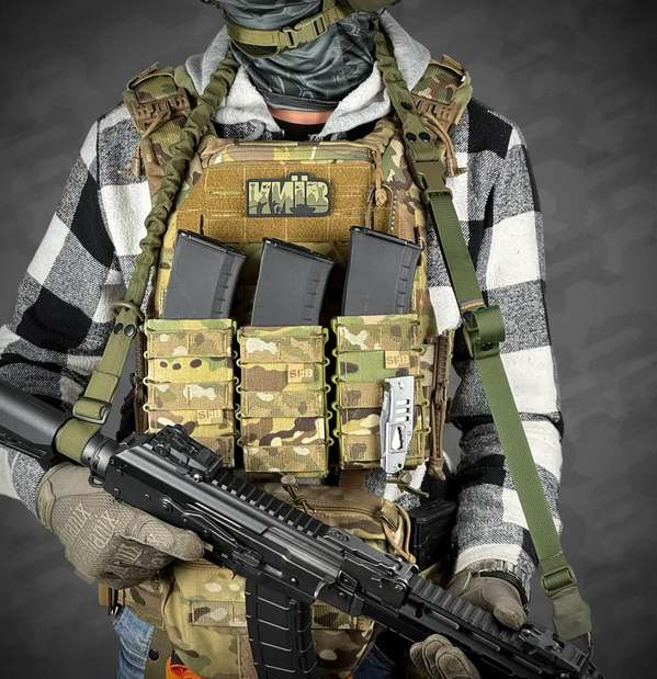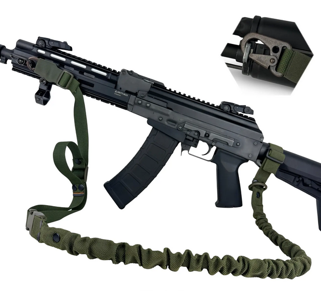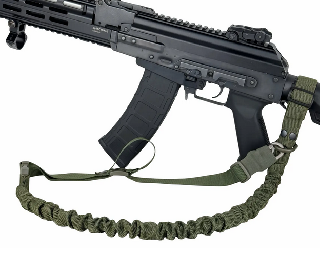 Elastyczny jedno/dwupunktowy pas do przenoszenia broni. Wyposażony w gumowy rdzeń osłonięty marszczoną taśmą, który jest elastyczny i dopasowuje się do kształtu ramienia strzelca. Zapewnia komfort użytkowania oraz stabilne oparcie broni na ramieniu a przez to poprawia precyzję celowania.
