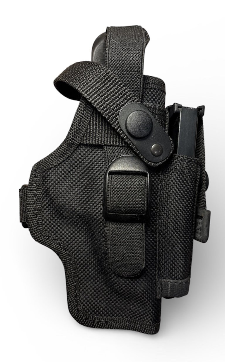 Kabura mocowana do pasa, profilowana pod kształt broni P-83 / P-64 z zamontowaną na grzbiecie kabury ładownicą. Wykonana jest z płyty wielowarstwowej a zewnętrzna strona z materiału Cordura 900. Produkt godny polecenia ze względu na swoją wytrzymałość i solidność wykonania. Do szybkiego wypięcia broni użyto oryginalnych klipsów firmy FOBUS.