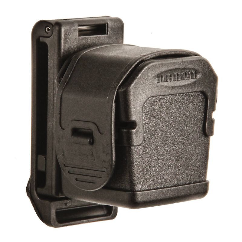 Uchwyt na wkład Blackhawk Taser® X26/X26P to oburęczny dodatek do kabury TASER X26 Duty (sprzedawanej osobno). W zestawie mini szlufka Mod-U-Lok z regulowaną przekładką. Pasuje do większości pasów służbowych