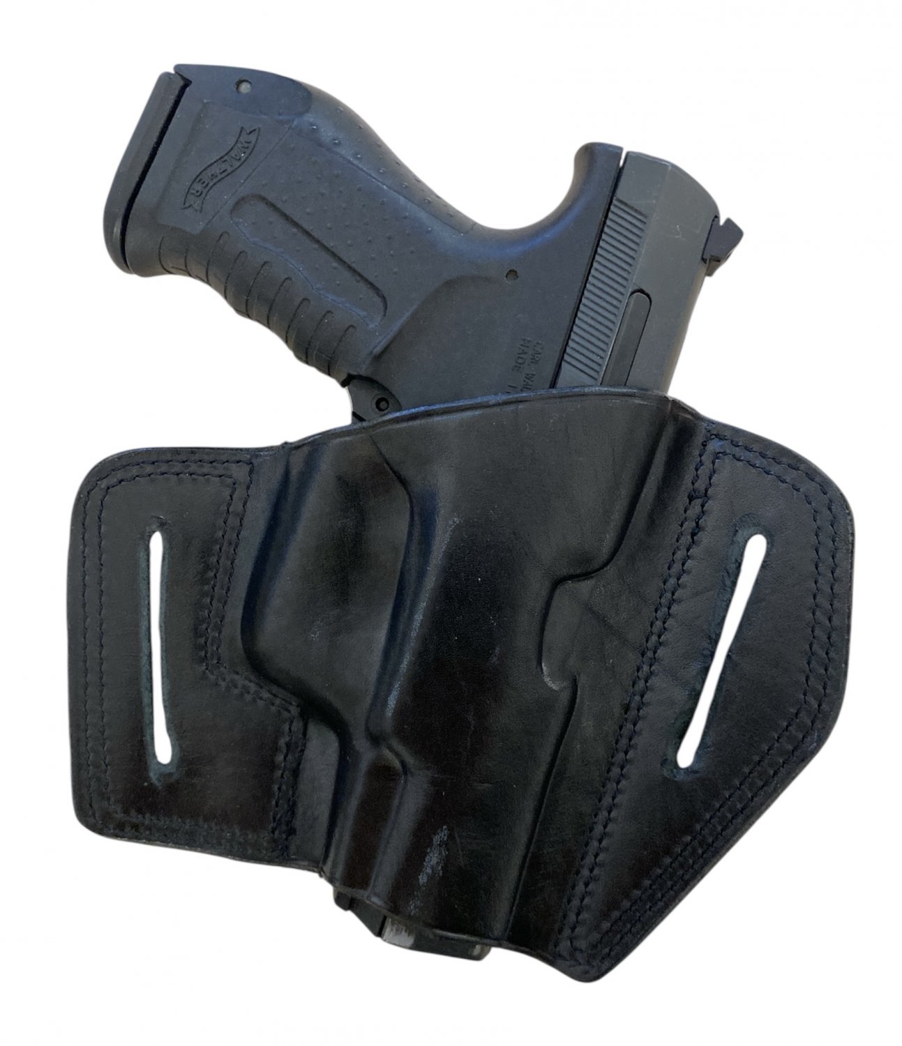 Kabura typu "Motyl otwarty" wykonana ze skóry blankowej, tłoczona ręcznie. Brzegi kabury zostały zabezpieczone przy pomocy specjalnej substancji, która ma za zadanie chronić ją przed zamoknięciem, zniszczeniem, itd.