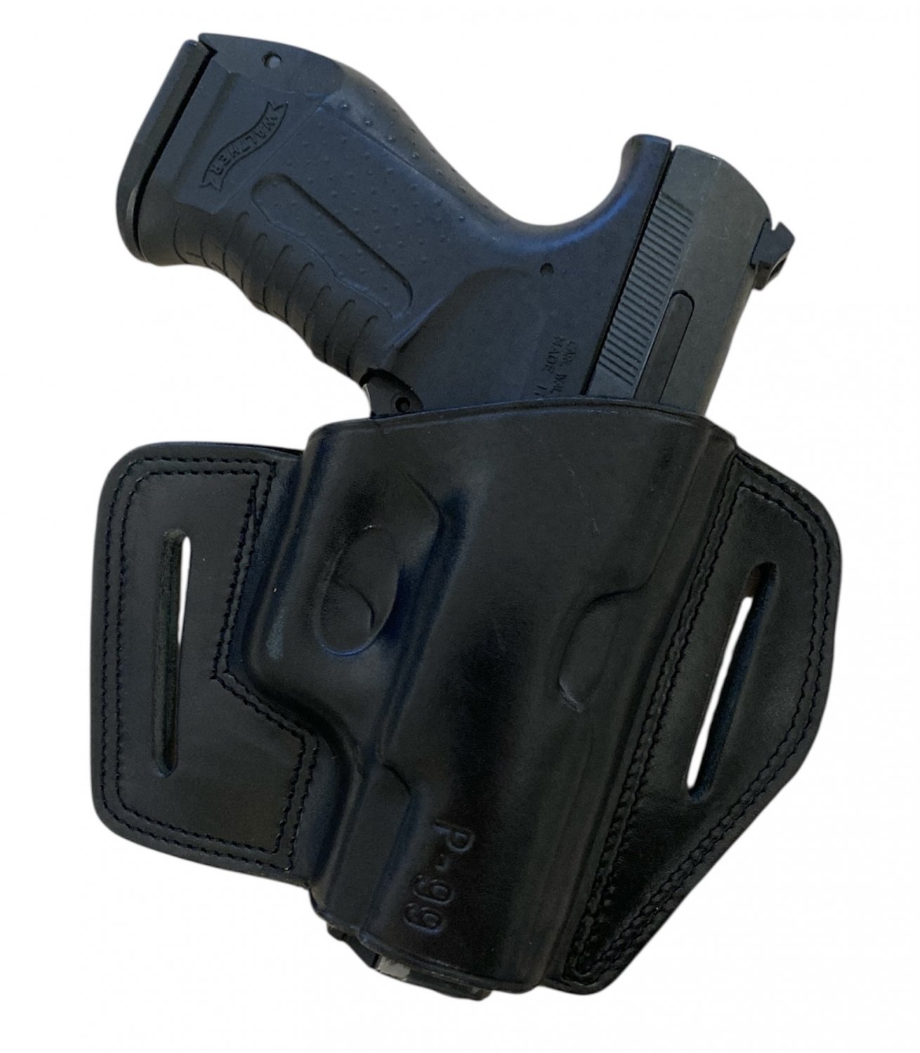 Kabura typu "Motyl otwarty" wykonana ze skóry blankowej, tłoczona ręcznie. Brzegi kabury zostały zabezpieczone przy pomocy specjalnej substancji, która ma za zadanie chronić ją przed zamoknięciem, zniszczeniem, itd.